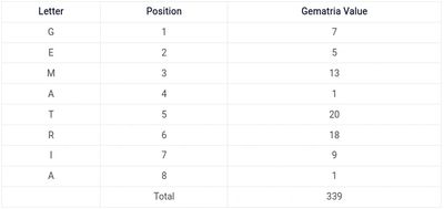 Mispar Ha-akhor (Hebrew: מספר האחור) translates to "Back Number" or "Rear Number". It is a specialized method of Gematria where the numerical value of a word is calculated differently than the standard method. In this method, the standard value of each letter is multiplied by its position in the word (e.g., the 1st letter × 1, the 2nd letter × 2, etc.), adding the multiplications to get a total.